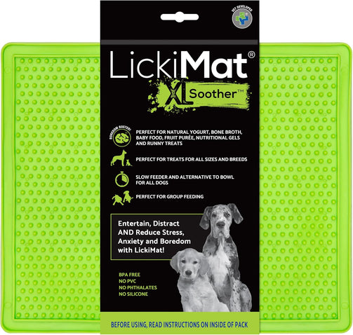 - NEW X LARGE SERIES: Our Ultimate Large dog lick mat for large breeds and group feeding. Same soft Authentic LickiMat rubber surface for pleasurable licking action and healthier teeth, gums and fresher breath. Gentle on your pet’s tongue. The X Large LickiMat is Developed and recommended by Vets.
