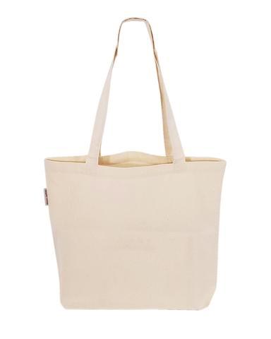 Design: this tote bag comes with a 4" bottom gusset. It has one spacious main compartment, 21" soft self-fabric handles so you can comfortably carry by hand or over your shoulder. Cotton handles are reinforced with stress point stitching for durability and to carry a heavy load. It has a flat bottom.